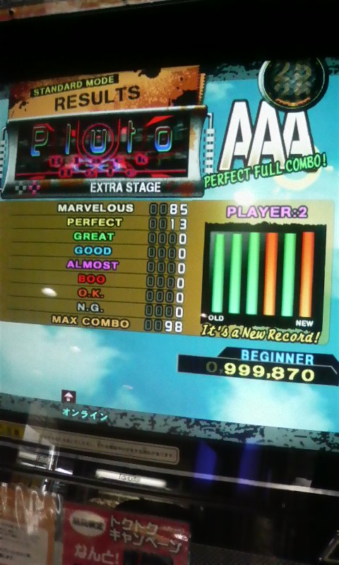 習譜面が残りPlutoだけだったので、今日でPFCにしようと思ってました