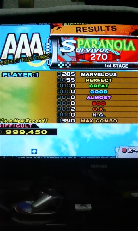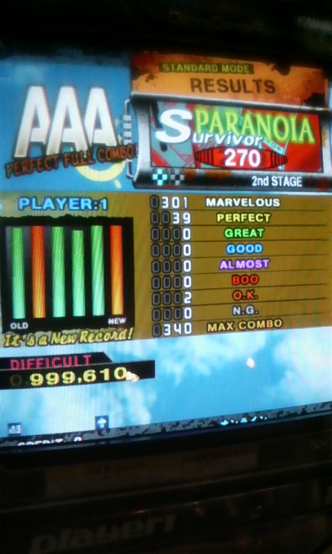 今日はP.Aをメインに10クレ というかもう9999埋めが難しくなってきた(笑) まずは予習:踊パラ鯖 実戦 減速以外の普通のスピードの所もリズムがややこしかったです 次は月1ぐらいで選んではわけのわからないスキップで放置してた 激TSUGARU 難しいのがそこだけだったのでリズムわかれば取れました最後の減速は微妙に緊張するけど・・・ 後はパフェ削り P37→P22 P35→P20 この二曲とも全一がP10なのでもう少し頑張りたい