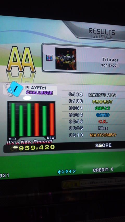 低速縦連まで黄色で抜けてヤベーと思ってたら、停止のリズム取りミスって加速直後ミス4とかw><