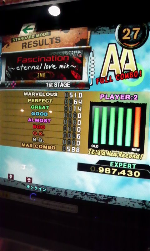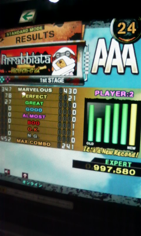 その後2回やるも最後までもたず><この譜面は一日一回だわ