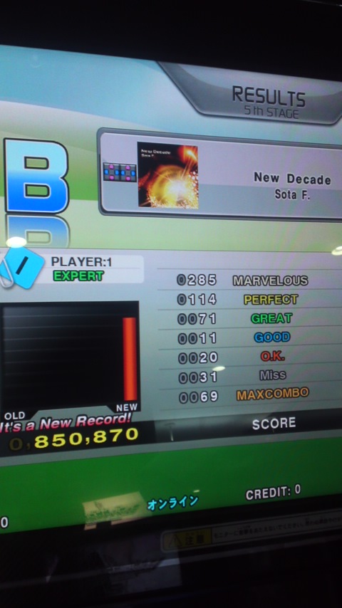最後にシングルの激ニューディケ5連発するも一回もAAすら出なくて