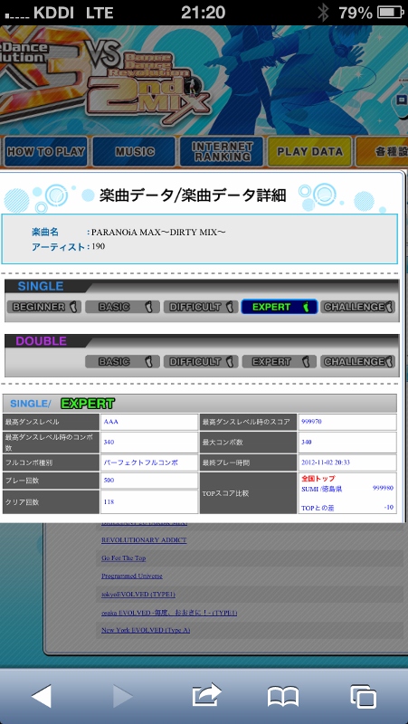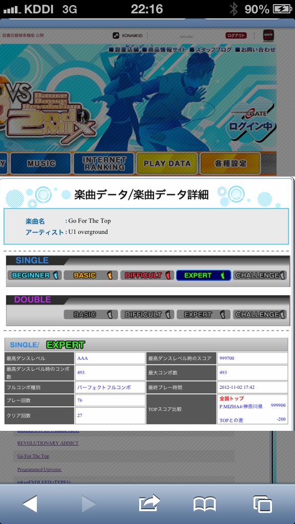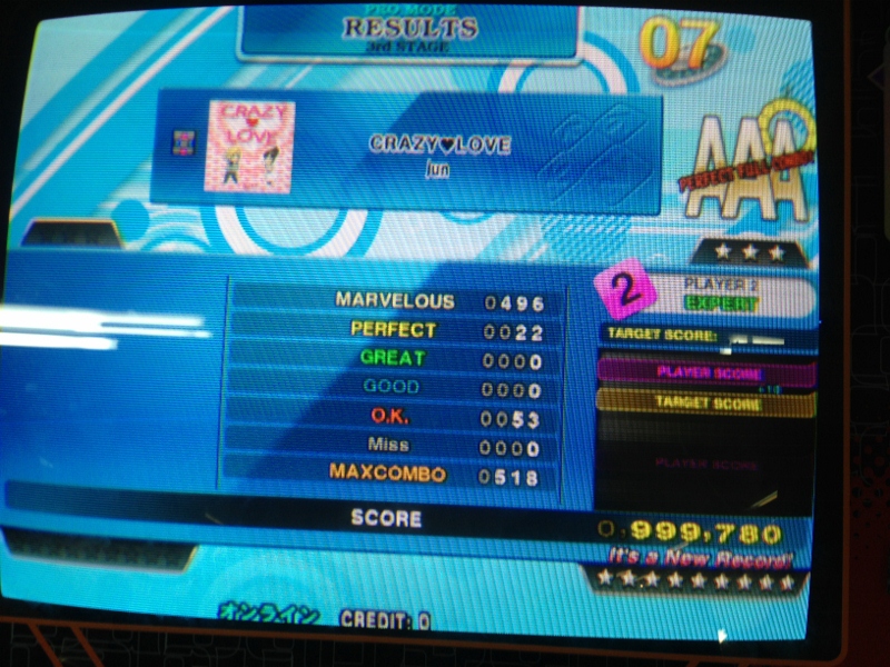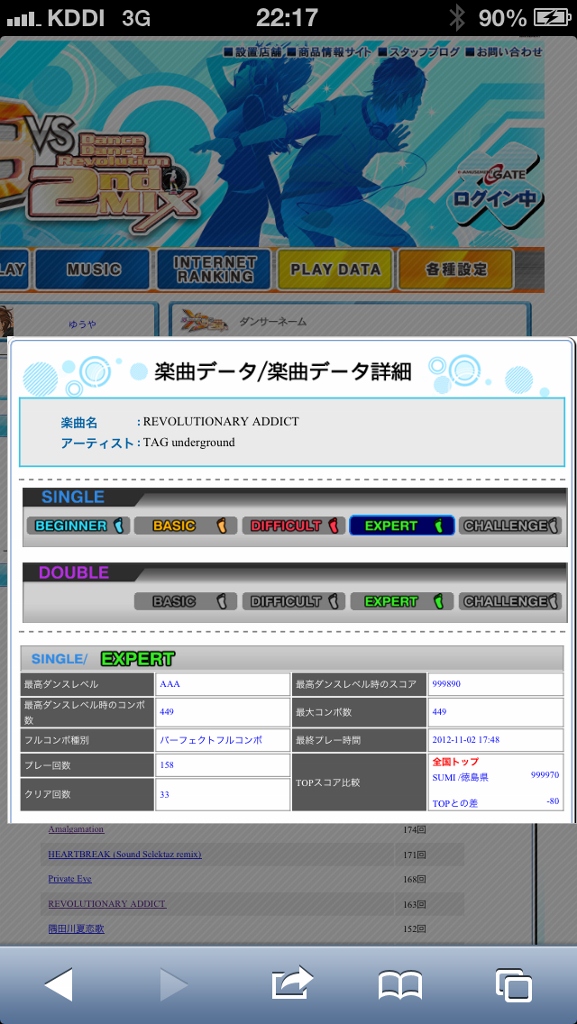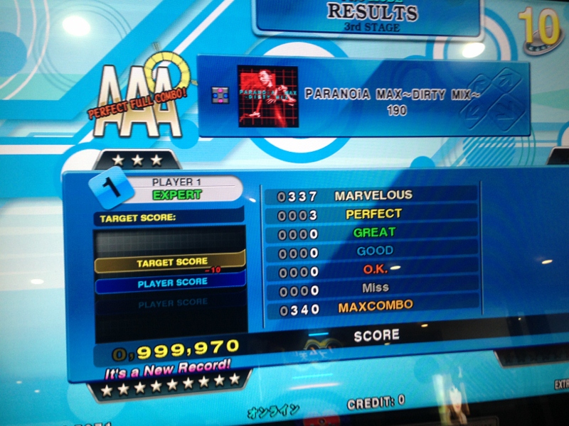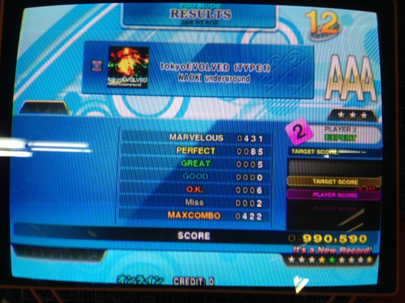 しょっぱなは無理して発狂EDIT!いい感じに足ほぐれて、東京CをAAAに乗せようとやったんだけど、最後まで黄色でいっても全部最後の停止と変な同時にもっていかれるw